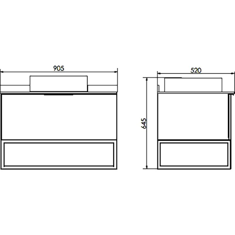 Система хранения: один выдвижной ящик, одна открытая полочка.