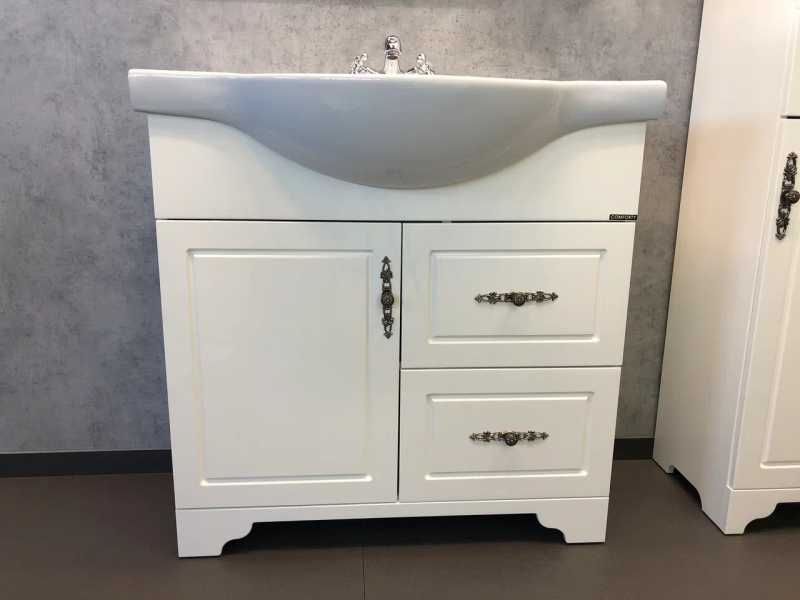 Тумба с раковиной Comfortу Севилья-85, напольная, слоновая кость, раковина Сенеж белая, 00-00003083Тумба с раковиной