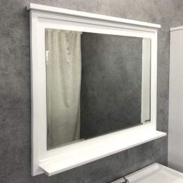 Большое зеркало с полочкой в обрамлении фигурной рамы из МДФ покрытого белой глянцевой эмалью. Высококачественное зеркальное полотно с амальгамой на основе серебра. Название: Зеркало