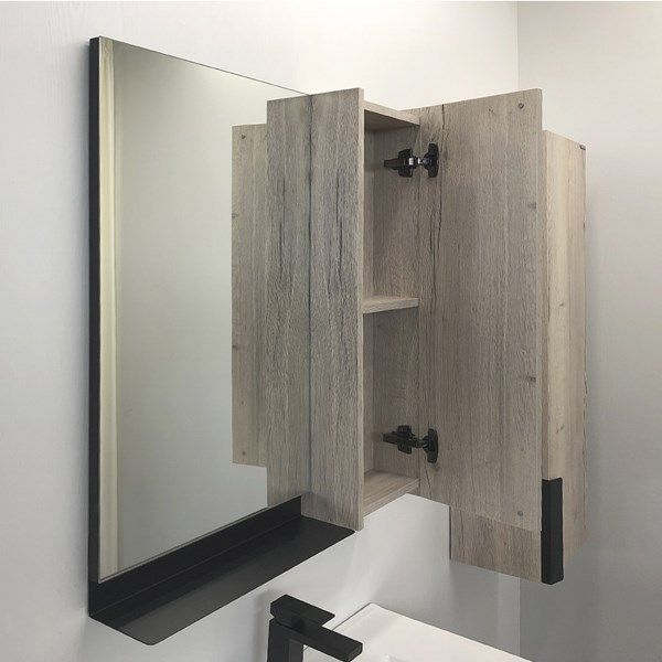 Зеркальное высококачественное полотно с амальгамой на основе серебра. Створка мебельного элемента оснащена петлями с системой плавного закрывания. За дверцей одна горизонтальная полка. Зеркало-шкаф состоит из двух отдельных элементов: зеркала и шкафчика - поэтому универсально, может быть подвешено в правом или левом варианте. Полка зеркала из металла окрашенного в черный муар или графит.