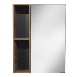 Зеркало-шкаф с пространством для открытого хранения. Створка оснащена системой плавного закрывания. Высококачественное зеркальное полотно с амальгамой на основе серебра. Фасад и корпус из влагостойкого ЛДСП дуб темно-коричневый. За створкой две горизонтальные полки. Зеркало-шкаф универсально - может быть подвешено в правом и левом варианте. Название: Зеркало-шкаф