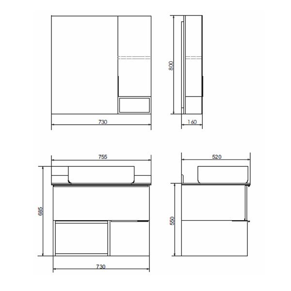 Габариты (ШхВхГ): 730*800*160 мм