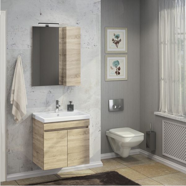 Название: Зеркало шкаф Артикул: Тромсе 60 Варианты цвета корпуса и фасада: Дуб Сонома Материал: ... Подробнее