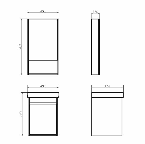 Зеркальное высококачественное полотно с амальгамой на основе серебра. Створка оснащена петлями с системой плавного закрывания. За створкой одна полка.