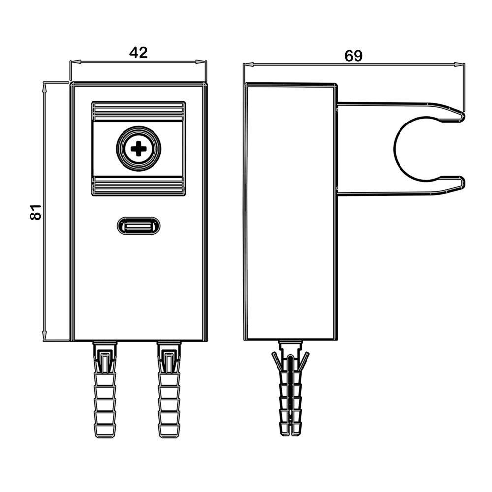 Многопозиционный настенный держатель для душевой лейки Хромоникелевое покрытие, ABS-пластик. Размер - 81х69х42 мм.