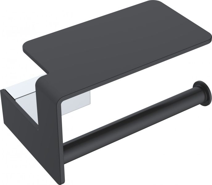Держатель для туалетной бумаги Boheme Q с полкой чёрный/хром 10941-CR-B