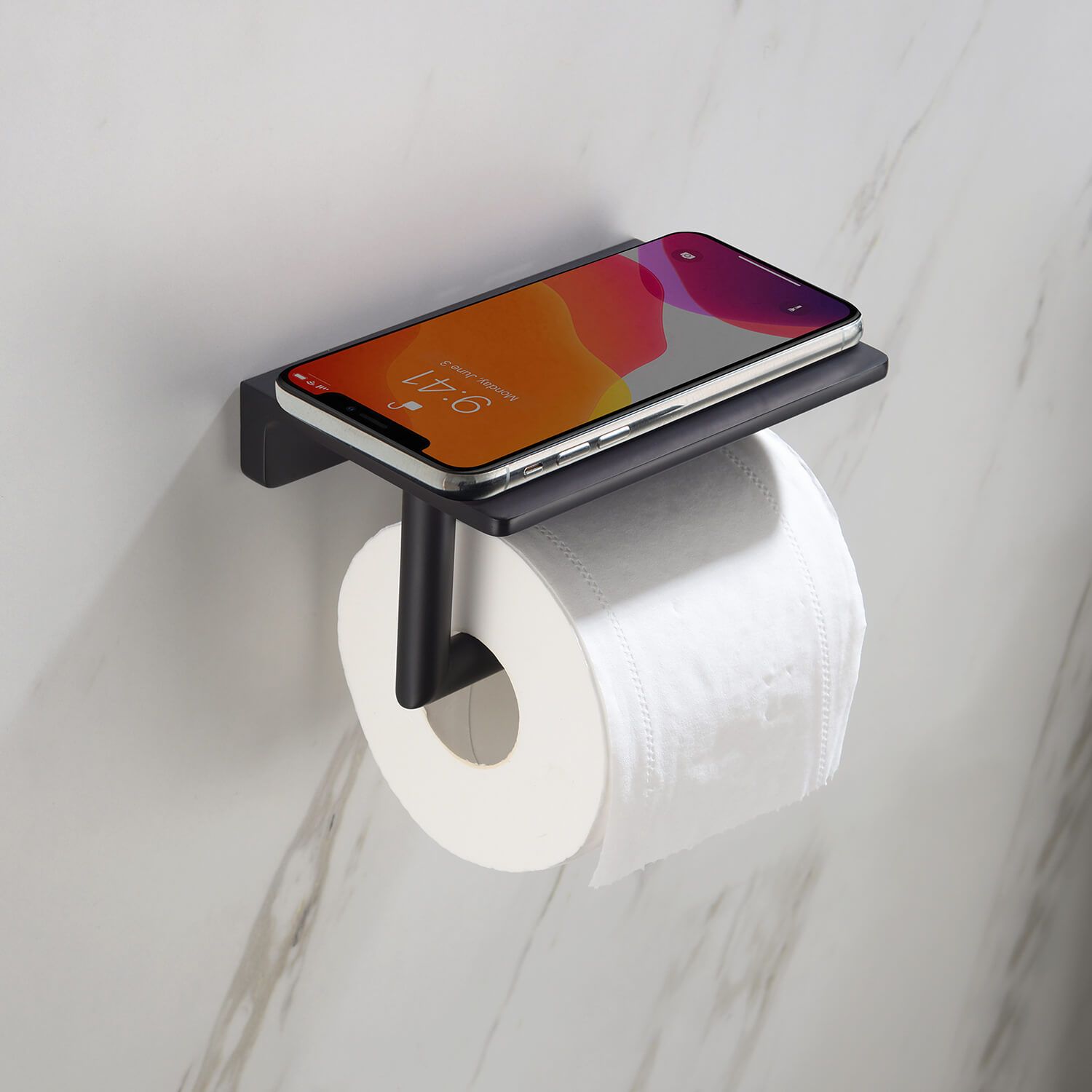 Красивая геометрия, виртуозность исполнения, чёрное покрытие будет отлично смотреться в интерьере хай-тек, loft или минимализм. Размещение сразу двух необходимых предметов на одном девайсе выглядит удобно и очень логично.Держатель туалетной бумаги с полочкой представляет собой прочную настенную конструкцию. Модель эргономична – продумана каждая деталь. Например, рулон туалетной бумаги не срывается с держателя, если вы случайно приложили большее усилие и чуть сильнее потянули за край.