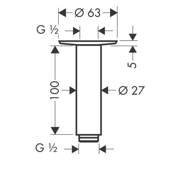 длина: 100 мм Ø стержня: 27 мм цель применения: также можно использовать в качестве удлинения потолок вид монтажа: наружный монтаж Материал: латунь соединительная резьба G ½