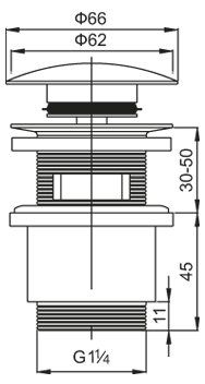 Донный клапан с системой "Клик-клак" с переливомДоступно в цветах: Хром, бронза, золото