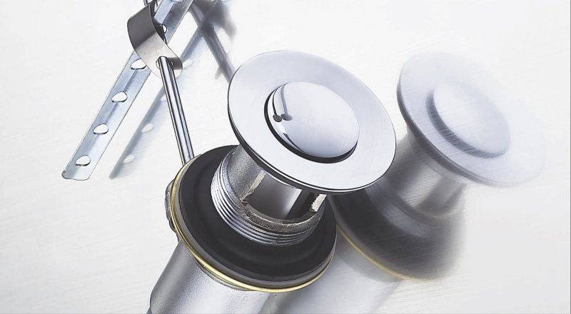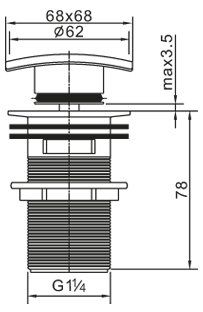 Донный клапан с системой "Клик-клак" с переливом, квадратная крышка, хром
