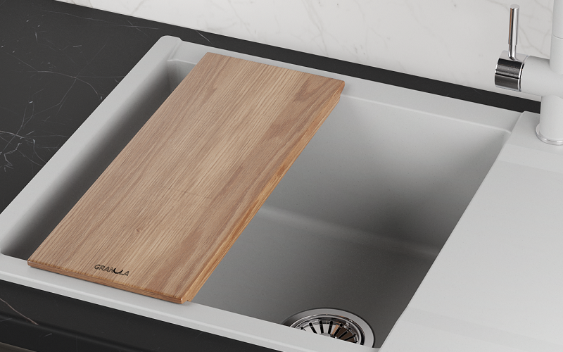 Деревянная доска от GRANULA, созданная из массива ясеня, станет незаменимым помощником на вашей кухне. Она идеально подходит для разделки мяса, птицы, овощей и фруктов и как подставка для горячих предметов. Благодаря своей многофункциональности, доска может использоваться как дополнительная поверхность для сушки фруктов, овощей и посуды прямо на кухонной мойке. Эта доска — идеальное дополнение к мойкам GRANULA. Она не только прекрасно впишется в интерьер вашей кухни, но и прослужит вам долгие годы. Доска не трескается, не деформируется и не подвержена гниению, что делает её надёжным выбором для любой хозяйки.