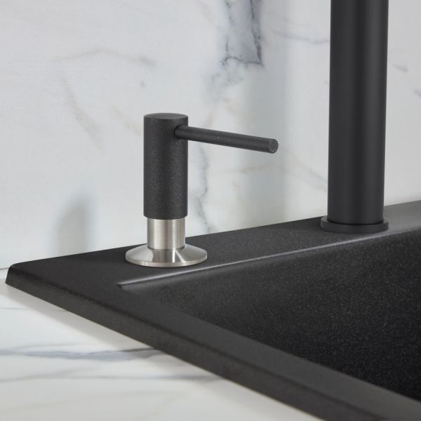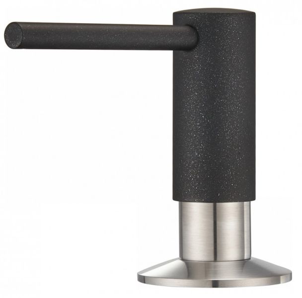 - Каменная текстура дозатора Milacio в черном цвете позволяет устанавливать данный дозатор с каменными мойкам большинства производителей.