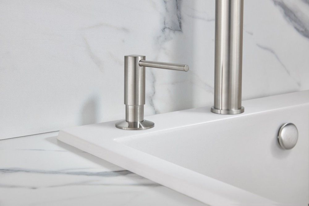 - Сатинированная ( брашированная ) текстура дозатора Milacio сатин соответствует цвету «нержавеющая сталь», что позволяет устанавливать данный дозатор как с каменными мойкам, так и в паре с мойками и смесителями из нержавеющей стали любых брендов.