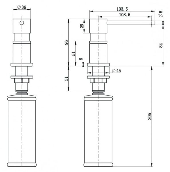 - Сатинированная ( брашированная ) текстура позволяет устанавливать дозатор Milacio как с каменными мойкам, так и в паре с мойками из нержавеющей стали с PVD покрытием любых брендов.