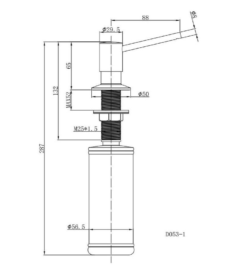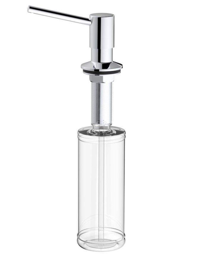 Дозатор встраиваемый для жидкого моющего средства Raglo R720.01 - отличный аксессуар для вашей кухни. Устанавливается в отверстие в столешнице 25 - 35 мм и фиксируется при помощи прижимной гайки на резьбе, рядом со смесителем для кухни. А со смесителями R80.62, S206.40, S205.40 составит прекрасный дуэт. Потому что выполнены они в одном цвете - хром. Толщина столешницы возможна от 1 до 5 см. Головка дозатора из латуни, колба объемом 350 мл из прочного пластика. Нажатие мягкое, носик дозатора поворачивается на 360 градусов. Дозатор легко монтируется на столешницу и весьма удобно и просто происходит пополнение моющего средства. Дозатор превосходно организует пространство у мойки и несомненно украсит ее.