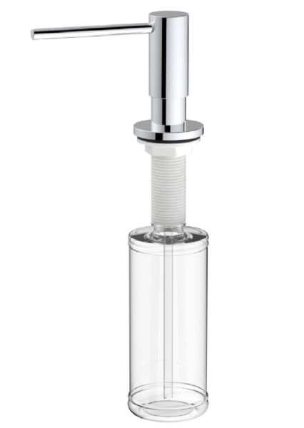 Дозатор встраиваемый для жидкого моющего средства Raglo R720.02 - отличный аксессуар для вашей кухни. Устанавливается в отверстие в столешнице Ф25 - 35 мм и фиксируется при помощи прижимной гайки на резьбе, рядом со смесителем для кухни. А со смесителями R80.62, S206.40, S205.40 составит прекрасный дуэт. Потому что выполнены они в одном цвете - хром. Толщина столешницы возможна от 1 до 5 см. Головка дозатора из латуни, колба объемом 350 мл из прочного пластика. Нажатие мягкое, носик дозатора поворачивается на 360 градусов. Дозатор легко монтируется на столешницу и весьма удобно и просто происходит пополнение моющего средства. Дозатор превосходно организует пространство у мойки и несомненно украсит ее.