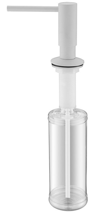 Дозатор для кухни и ванной, артикул D004-431Дозатор для кухни или ванной, встраиваемый, объемом 350 мл, матовая поверхность, изготовлен из латуни и пластика.