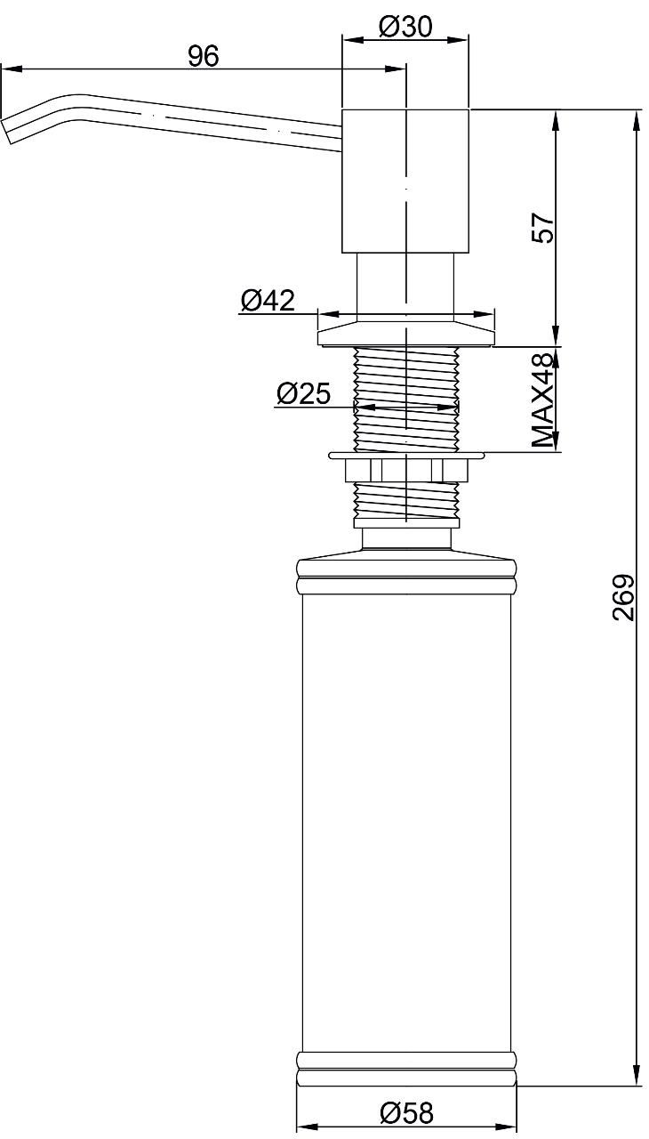 Дозатор для кухни и ванной, артикул D002-331Дозатор для кухни или ванной серии Rein, встраиваемый, объемом 350 мл, матовая поверхность, изготовлен из латуни и пластика