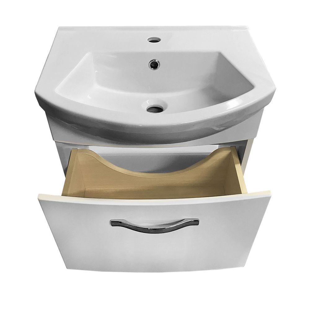 Подвесная/напольная тумба для небольших ванных комнат Лаконичный дизайн, глянцевая поверхность фасада, механизмы Hettich. Небольшая глубина тумбы органично впишется в любую, даже небольшую ванную комнату. Глубокий ящик