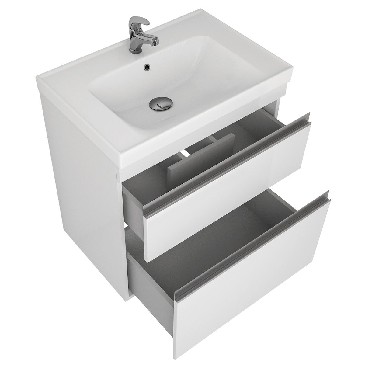 Коллекция Grace Plus под новый керамический умывальник Grace 60/70 см. Модель имеет два ящика – верхний оснащен встроенным органайзером.
