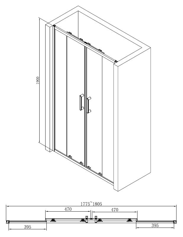 Душевая дверь ABBER Schwarzer Diamant 180см хром AG33180