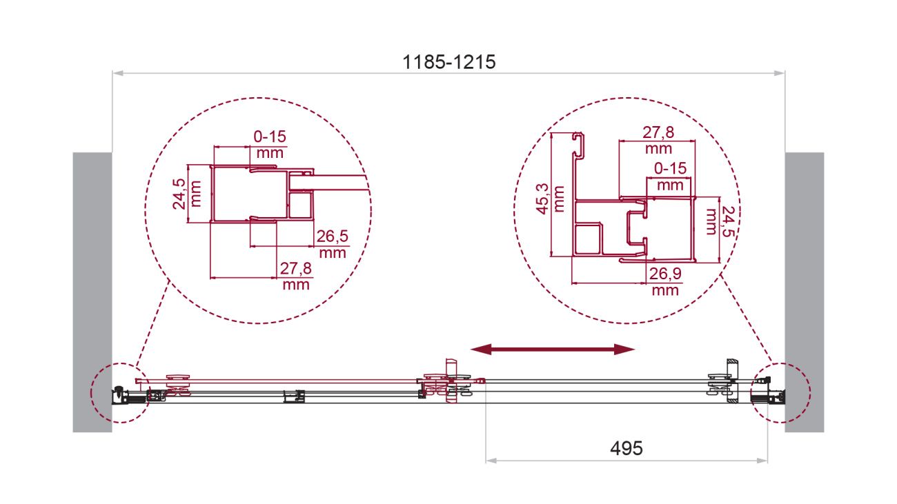 Габариты : ширина - 120 см, высота - 195 см. Толщина стекла : 6 мм. Цвет профиля : чёрны... Подробнее