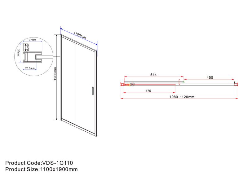 Душевая дверь Vincea Garda VDS-1G110CLGM, 1100, вороненая сталь, стекло прозрачное