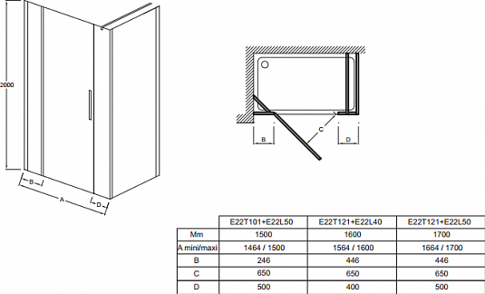 Душевая дверь Jacob Delafon CONTRA E22T121-GA 120*200