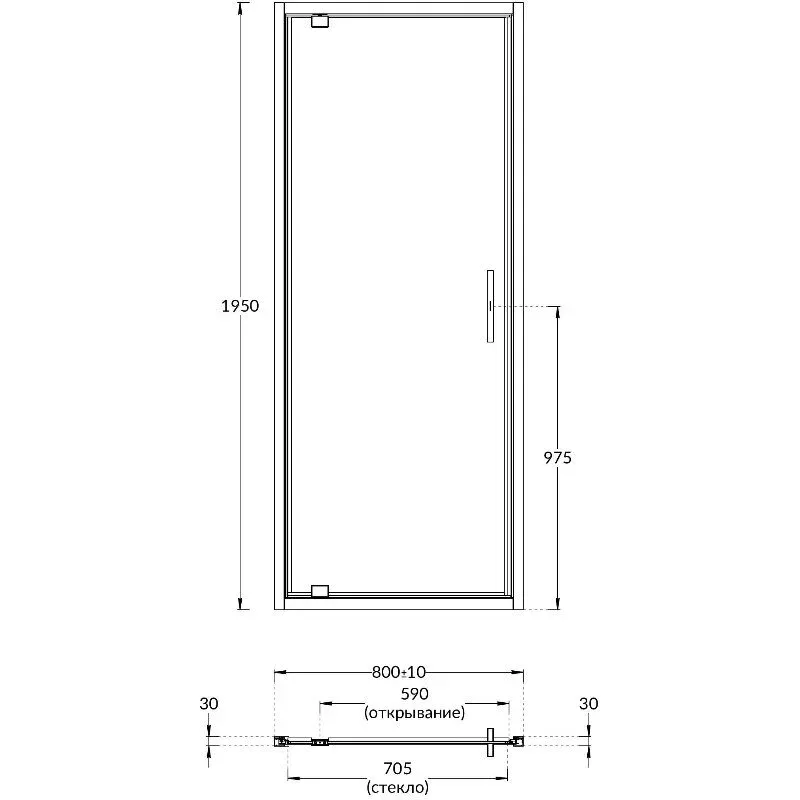 Преимущества распашной двери VETRO: — Лаконичный современный дизайн: алюминиевый профиль, скрытый крепёж, стильная ручка с обеих сторон двери — Регулировка проема 20 мм (10 мм с каждой стороны) — Закаленное безопасное стекло 6 мм, водоотталкивающее покрытие «easy clean» — Правое или левое открывание, лёгкая установка.