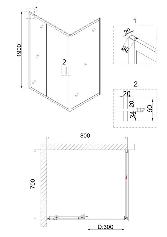 Душевая дверь Niagara NG-62-8A 80см хром/прозрачное