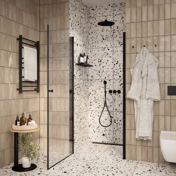 • Душевая дверь помогает зонировать помещение на отдельные функциональные участки.