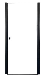 Дверь DE90B душевая в нишу PARLY (код 9286)Размер: 90х185 смРаспашная дверь образует вход комфортной ширины. Модель из прозрачного закаленного стекла (5 мм). Полотно устойчиво к случайным ударам. Алюминиевый черный профиль не деформируется при высокой влажности и смене температуры. Дверь имеет уплотнители под углом 45 градусов.