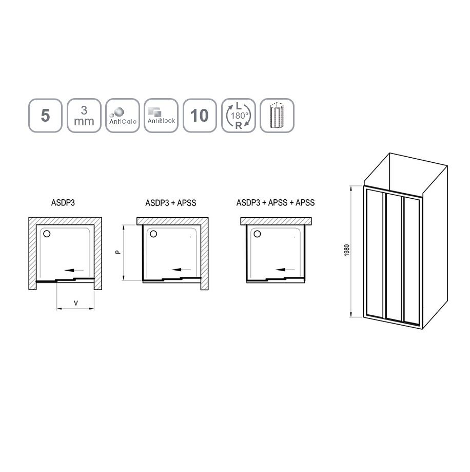 Душевая дверь раздвижная Ravak ASDP3-120 198 (черный+Transparent) 00VG03R2Z1 купить