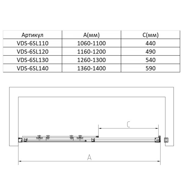 Душевая дверь Vincea Slim 8mm VDS-6SL140CL, 1400, хром, стекло прозрачное