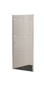 Душевая дверь в нишу Parly DE80Размер: 80х185 смРаспашная дверь образует вход комфортной ширины. Модель из прозрачного закаленного стекла (5 мм) с дизайнерским рисунком. Полотно устойчиво к случайным ударам. В случае битья, стекло рассыпается на множество мелких граней с тупыми концами.Алюминиевый полированный хромированный профиль не деформируется при высокой влажности и смене температуры. Хромированные петли и ручка устойчивы к образованию коррозии.Достоинства душевой двери:Защищает ванную комнату от брызг воды. Пол возле душевой зоны остается сухим, что снижает шансы поскользнуться после водных процедур.Душевая дверь помогает зонировать помещение на отдельные функциональные участки. Особенно это актуально для совмещенного санузла и небольших ванных комнат.Двери из стекла практичны, долговечны и гигиеничны. На стеклянной поверхности не скапливаются бактерии и грязь, полотно легко чистить.Дизайн двери дополнит стилистическую задумку оформления ванной.При правильном уходе душевая дверь долгие годы сохраняет эстетический внешний вид. Для чистки необходимо использовать мягкие губки и салфетки, специальные жидкие чистящие средства.Нельзя использовать жесткие губки и абразивные порошки, которые оставляют мелкие царапины. Как результат, в них скапливается грязь и размножаются бактерии. Поэтому важно правильно чистить стеклянные поверхности.