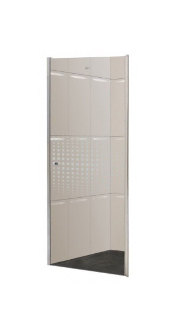 Душевая дверь в нишу Parly DE90Размер: 90х185 смРаспашная дверь образует вход комфортной ширины. Модель из прозрачного закаленного стекла (5 мм) с дизайнерским рисунком. Полотно устойчиво к случайным ударам. В случае битья, стекло рассыпается на множество мелких частей с тупыми гранями.Алюминиевый полированный хромированный профиль не деформируется при высокой влажности и смене температуры. Хромированные петли и ручка устойчивы к образованию коррозии.Достоинства душевой двери:Защищает ванную комнату от брызг воды. Пол возле душевой зоны остается сухим, что снижает шансы поскользнуться после водных процедур.Душевая дверь помогает зонировать помещение на отдельные функциональные участки. Особенно это актуально для совмещенного санузла и небольших ванных комнат.Двери из стекла практичны, долговечны и гигиеничны. На стеклянной поверхности не скапливаются бактерии и грязь, полотно легко чистить.Дизайн двери дополнит стилистическую задумку оформления ванной.При правильном уходе душевая дверь долгие годы сохраняет эстетический внешний вид. Для чистки необходимо использовать мягкие губки и салфетки, специальные жидкие чистящие средства.Нельзя использовать жесткие губки и абразивные порошки, которые оставляют мелкие царапины. Как результат, в них скапливается грязь и размножаются бактерии. Поэтому важно правильно чистить стеклянные поверхности.