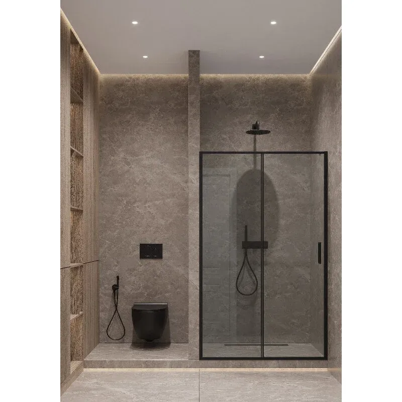 Душевая дверь Timo T04, 150 х 195 см, стекло прозрачное, профиль черныйДушевая раздвижная дверь Timo является изысканным и практичным вариантом для вашей ванной комнаты. Этот стильный элемент выполнен из высококачественных материалов и предлагает максимальный комфорт, и удобство во время водных процедур. Надежные роликовые механизмы обеспечивают плавное и бесшумное движение двери, что подтверждает её долговечность и стабильность эксплуатации. Дополнительно, конструкция включает мягкие уплотнители, которые предотвращают протекание воды. Раздвижная душевая дверь станет отличным акцентом вашей ванной комнаты.