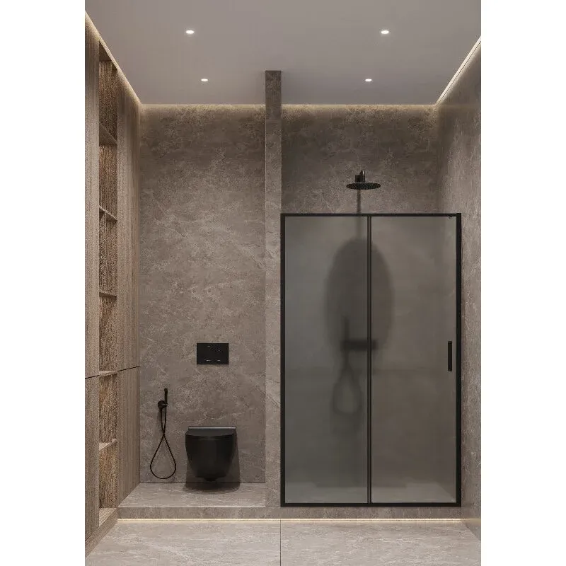 Душевая дверь Timo T06, 150 х 195 см, стекло матовое, профиль черныйДушевая раздвижная дверь Timo является изысканным и практичным вариантом для вашей ванной комнаты. Этот стильный элемент выполнен из высококачественных материалов и предлагает максимальный комфорт, и удобство во время водных процедур. Надежные роликовые механизмы обеспечивают плавное и бесшумное движение двери, что подтверждает её долговечность и стабильность эксплуатации. Дополнительно, конструкция включает мягкие уплотнители, которые предотвращают протекание воды. Раздвижная душевая дверь станет отличным акцентом вашей ванной комнаты.