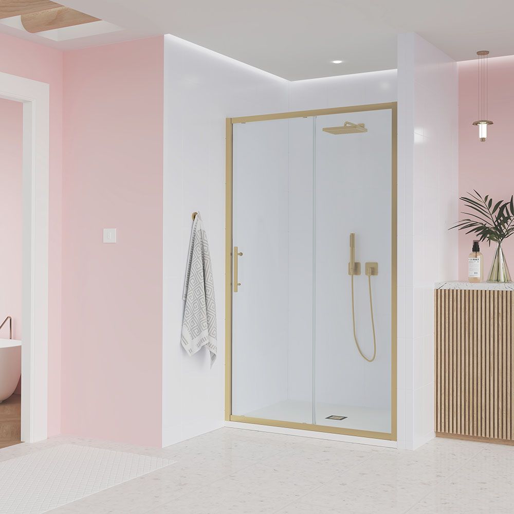 Душевая дверь Veconi Evo 100 G, 1700x1950, золото брашинг, стекло прозрачное купить