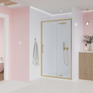 Душевая дверь Veconi Evo 100 G, 1700x1950, золото брашинг, стекло прозрачное