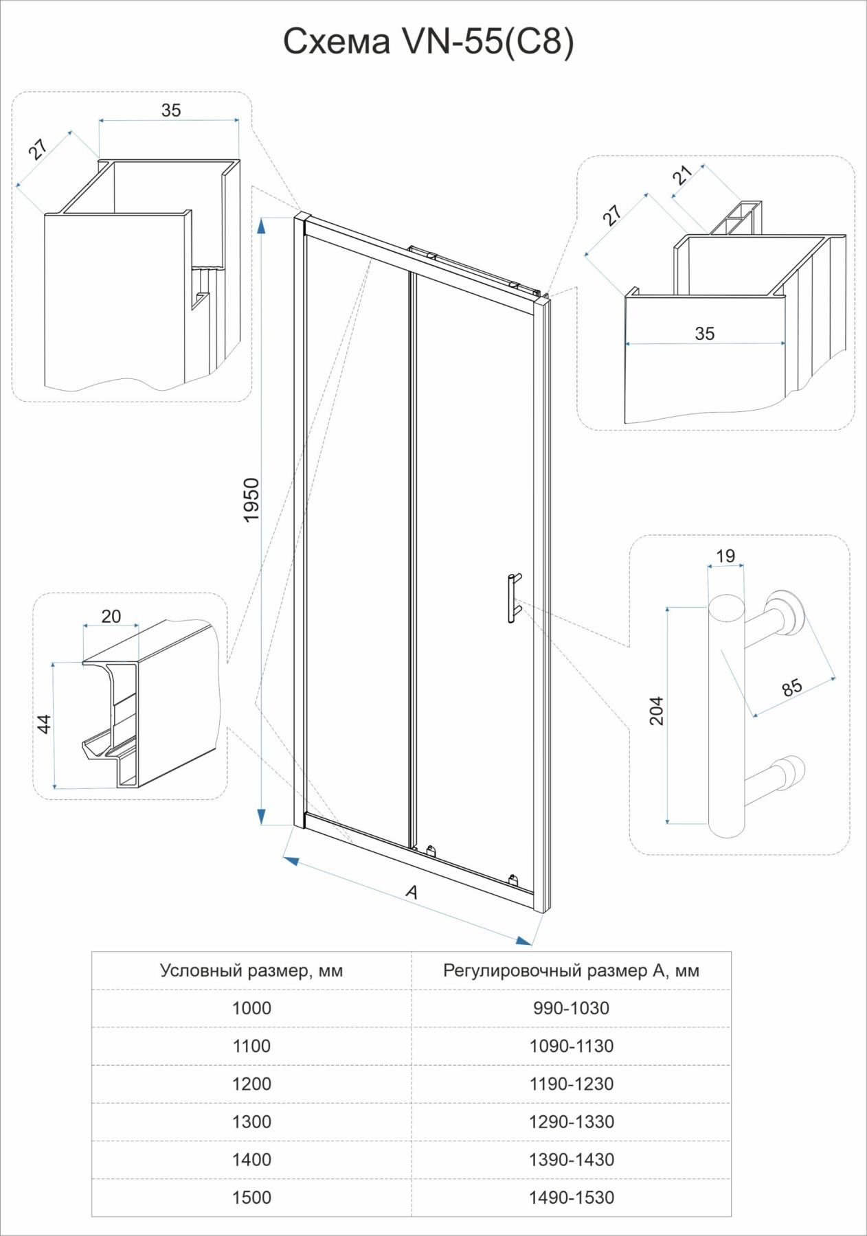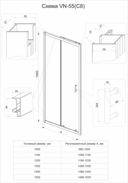 Душевая дверь Veconi Vianno VN-55M, 1300x1950, Хром, стекло матовое