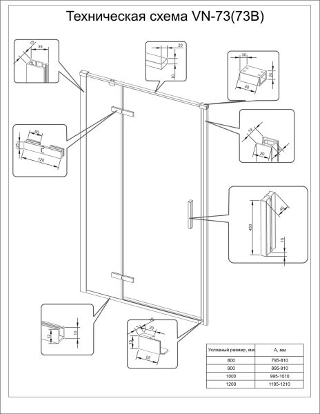 Душевая дверь Veconi Vianno VN-73B, 1000x1950, Черный, стекло прозрачное купить