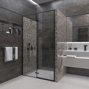 Душевая дверь Veconi Vianno VN-73B, 1000x1950, Черный, стекло прозрачное