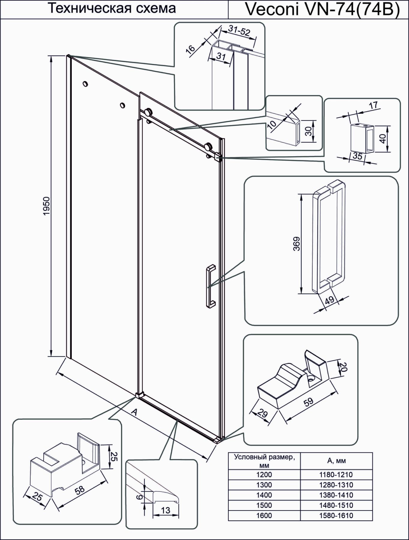 Душевая дверь Veconi Vianno VN-74B, 1500x1950, черный, стекло прозрачное купить