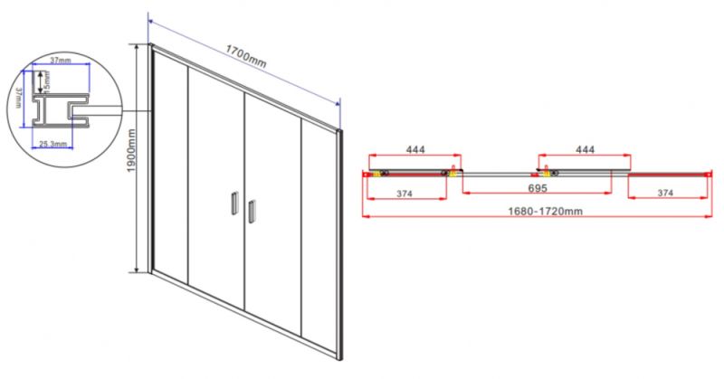 Душевая дверь Vincea Garda VDS-1G2 170 см раздвижная, стекло шиншилла, профиль хром, VDS-1G2170CHДушевая дверь