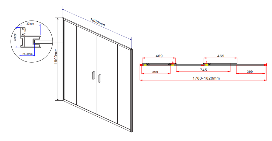 Душевая дверь Vincea Garda VDS-1G2 180 см раздвижная, стекло прозрачное, хром, VDS-1G2180CLДушевая дверь