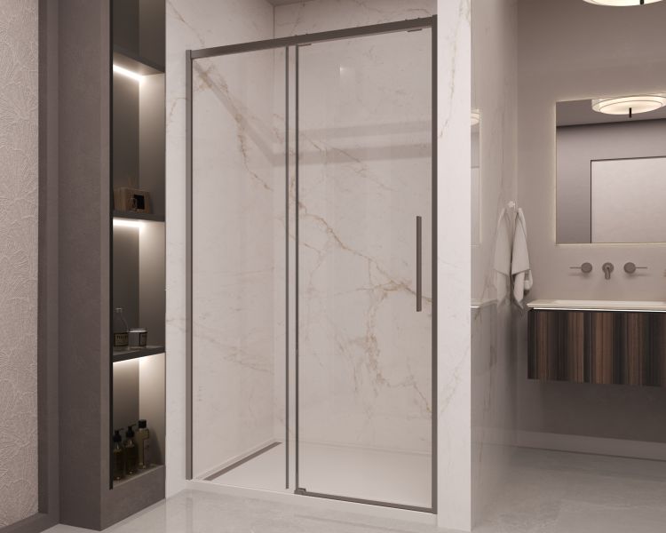 Душевая дверь Vincea Stella VDS-1ST110CLGM, 1100, вороненая сталь, стекло прозрачное
