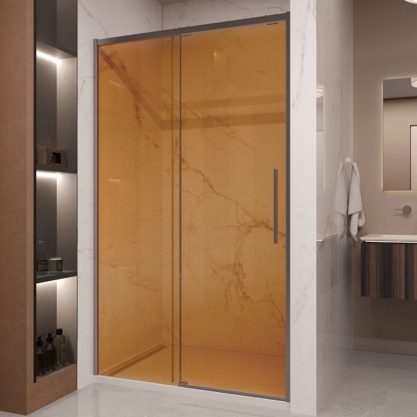 Душевая дверь Vincea Stella VDS-1ST120GSGM, 1200, вороненая сталь, стекло янтарь
