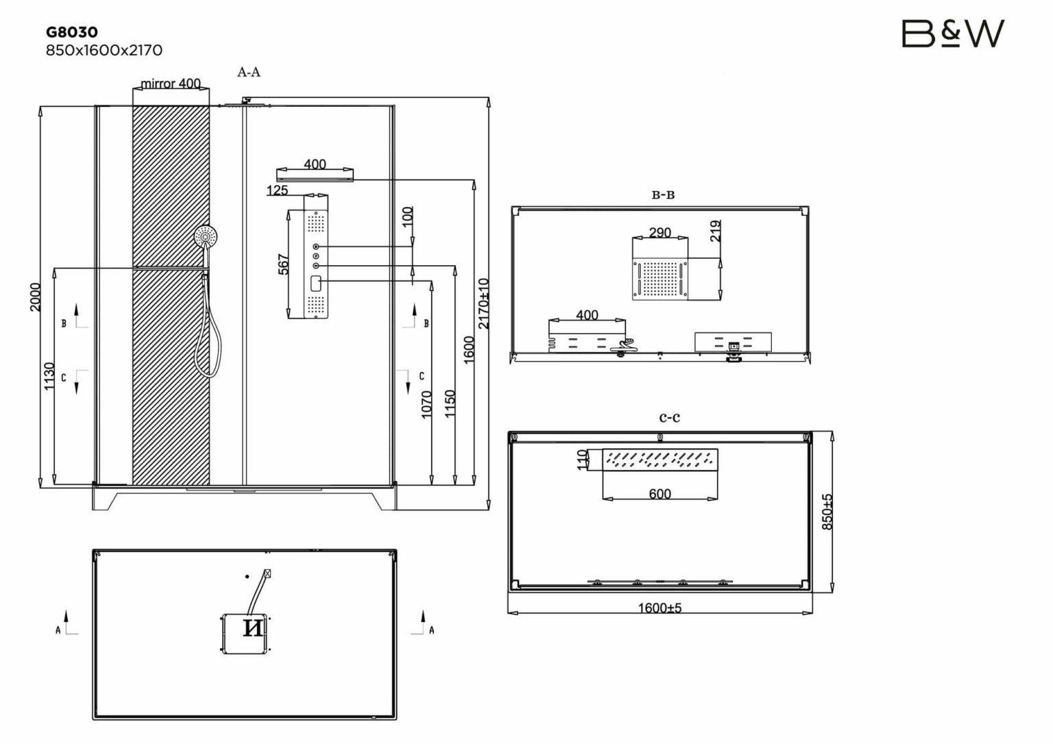 Душевая кабина Black & White Galaxy 8030000• Санитарный акрил