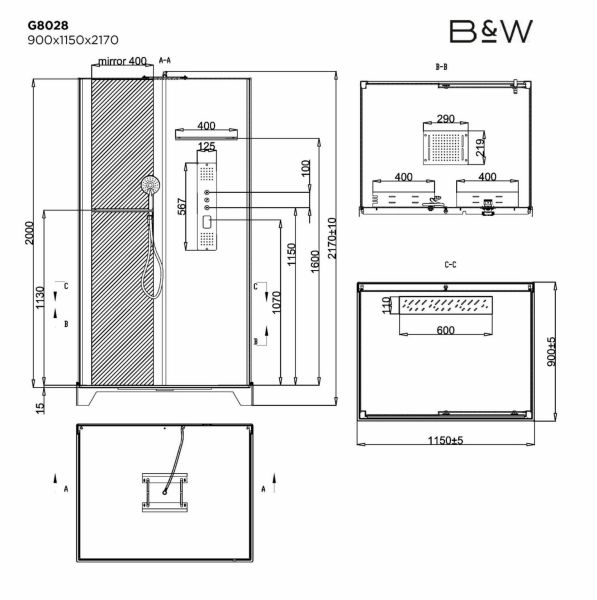 Душевая кабина Black & White Galaxy 8028000• Санитарный акрил